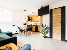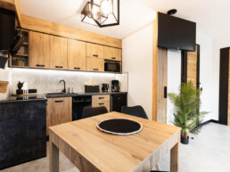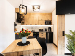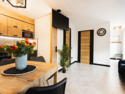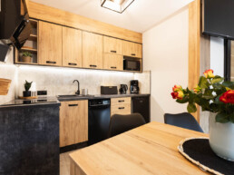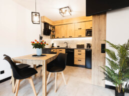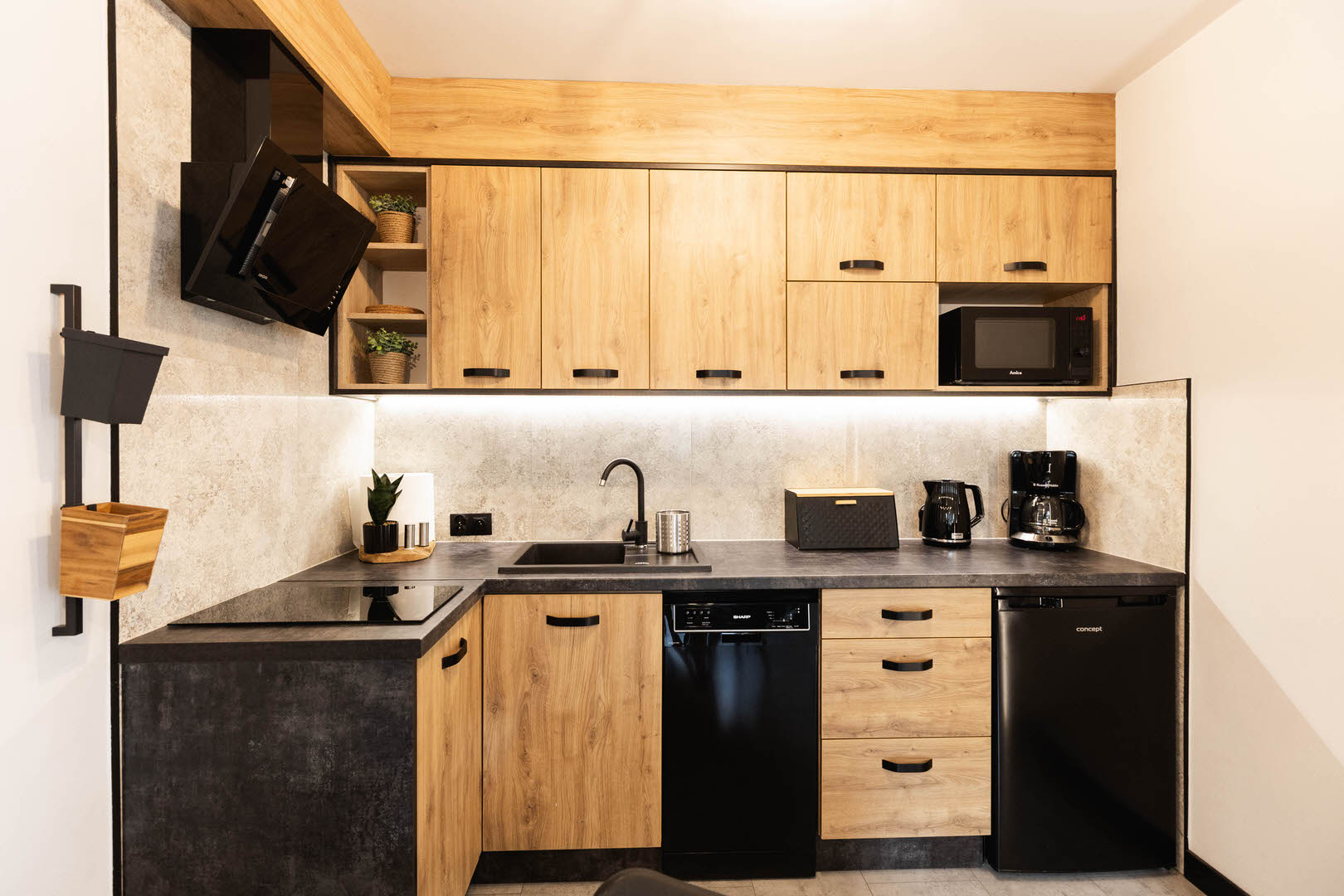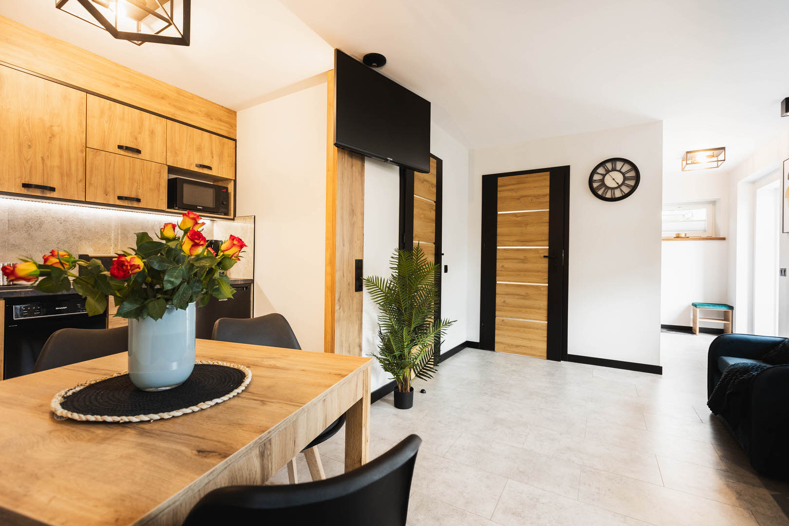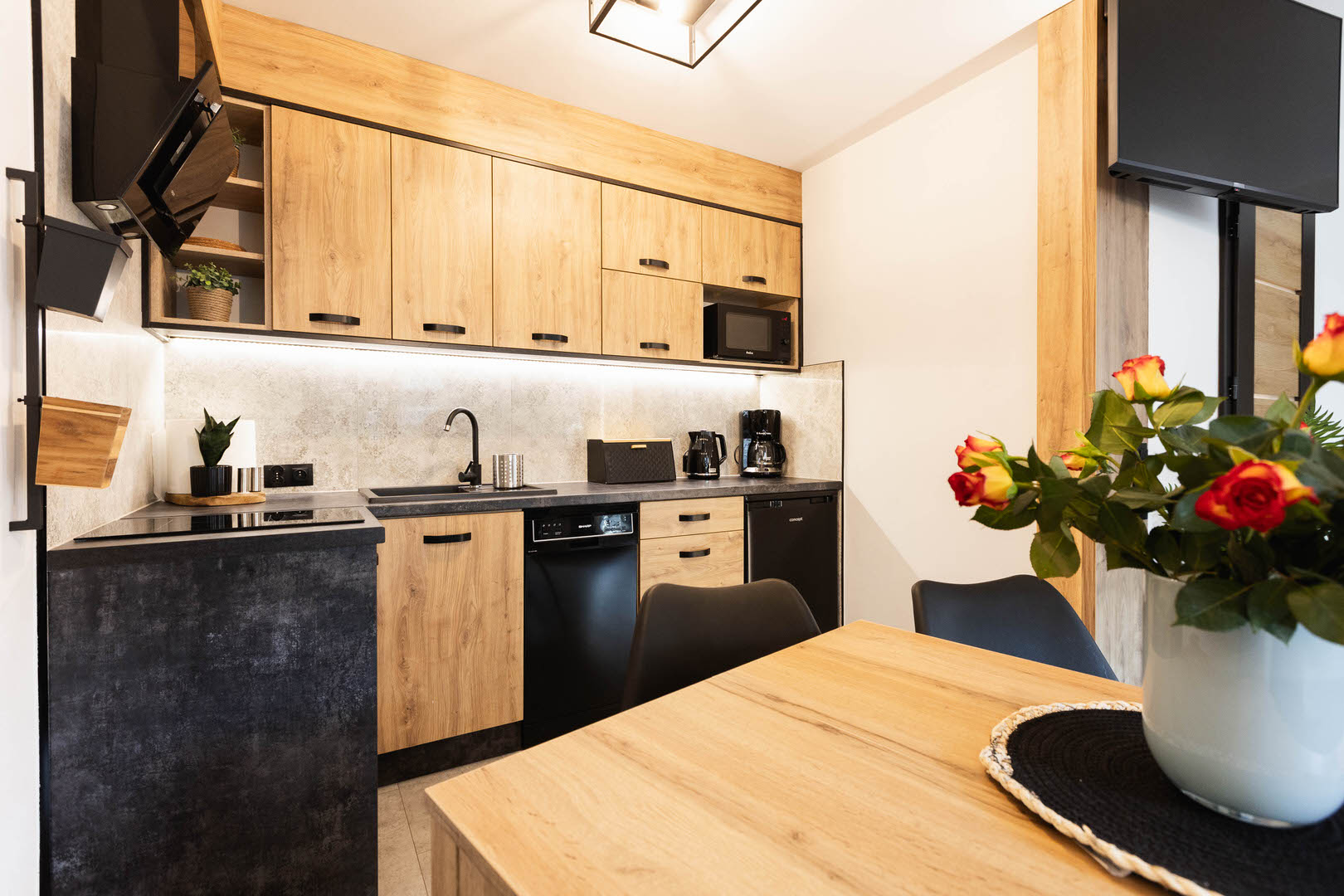 Nasz kuchnia wyposażona w nowoczesne urządzenia i wysokiej jakości sprzęty, sprawi, że przygotowywanie posiłków stanie się prawdziwą przyjemnością. W kuchni znajdziesz wszystko, czego potrzebujesz, by stworzyć smaczne dania - od kuchenki mikrofalowej po piekarnik, od ekspresu do kawy po garnki i patelnie. Przestronna lodówka i duży blat roboczy zapewniają wygodę i komfort podczas przygotowywania potraw. To idealne miejsce, by eksperymentować z lokalnymi smakami lub przyrządzać ulubione dania dla rodziny i przyjaciół.