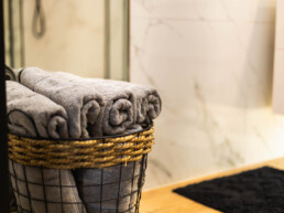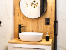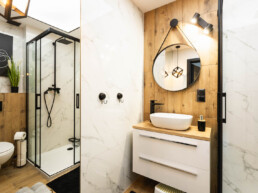 Nasza łazienka to miejsce, gdzie komfort i funkcjonalność łączą się w harmonię, tworząc przestrzeń sprzyjającą chwilom relaksu i dbałości o siebie. Nowoczesny wystrój sprawi, że poczujecie się jak w domu.