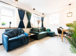 Nasz wspólny pokój to miejsce, gdzie spotkania nabierają wyjątkowego charakteru. Wygodne meble, miękkie poduszki i starannie dobrane dodatki tworzą atmosferę, która zachęca do relaksu i wspólnego spędzania czasu. To miejsce, gdzie można delektować się smaczną kawą lub herbatą w miłej atmosferze, czy to rozmawiając z innymi gośćmi, czy czytając ulubioną książkę. Otwarta przestrzeń i ciepłe oświetlenie tworzą przyjazne środowisko, które sprawia, że każdy czuje się jak w domu.