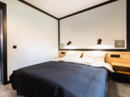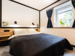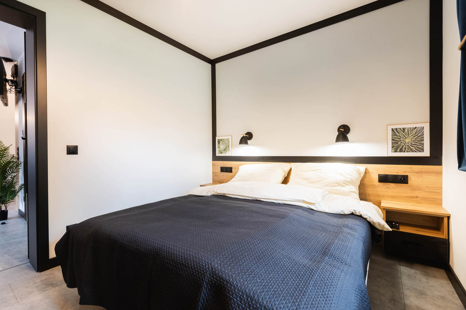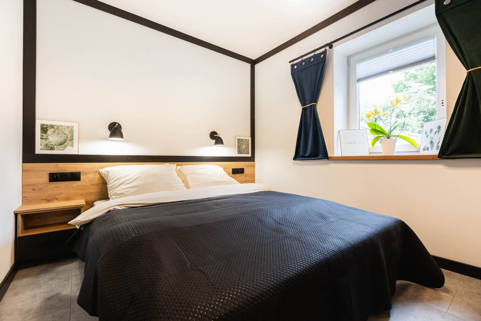 Nasza główna sypialnia to miejsce, gdzie romantyzm spotyka się z komfortem. Przestronne wnętrze, miękka pościel i stonowane kolory tworzą atmosferę sprzyjającą relaksowi i bliskości. Duże, wygodne łóżko zapewnia nocny odpoczynek na najwyższym poziomie. Jasne oświetlenie oraz starannie dobrane dodatki tworzą spokojną atmosferę, w której można znaleźć chwilę tylko dla siebie. To idealne miejsce do odpoczynku po dniu pełnym wrażeń.